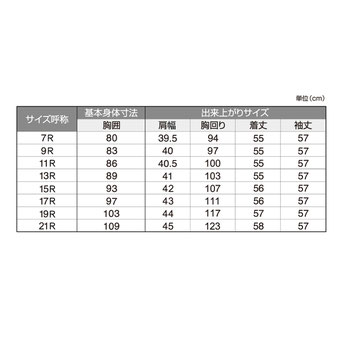 2.袖・胸囲・着丈それぞれサイズ調整可能(袖3cm×2回、胸囲6cm×1回、着丈4cm×1回)