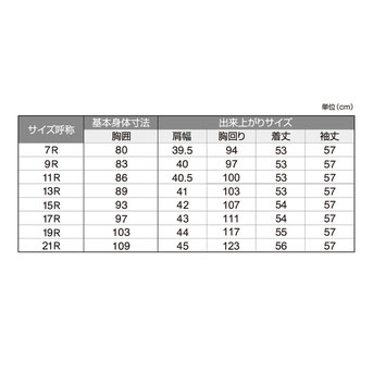 2.袖・胸囲・着丈それぞれサイズ調整可能(袖3cm×2回、胸囲6cm×1回、着丈4cm×1回)